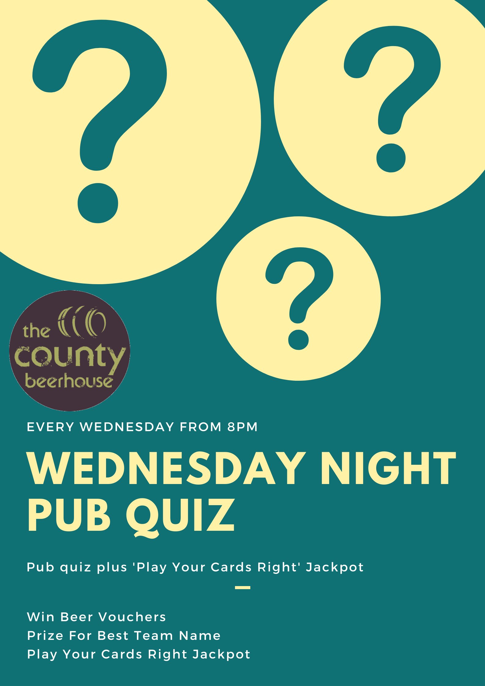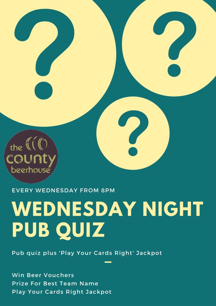 Now hosting the pub quiz at The County in Huddersfield on a Wednesday night!